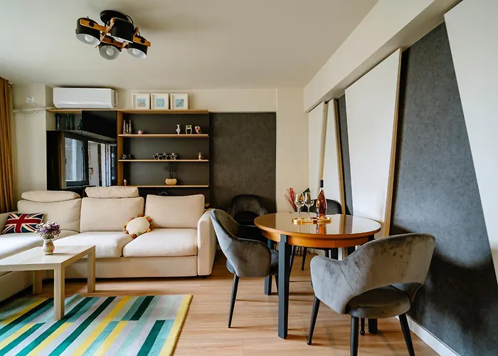 The Quark Modern Designed 2Br Central Apartment ferielejlighed ligger næsten 2 km fra Castelul Fermecat. Denne ferielejlighed med udsigt over byen indeholder 2 værelser, 2 badeværelser og et udstyret køkken.